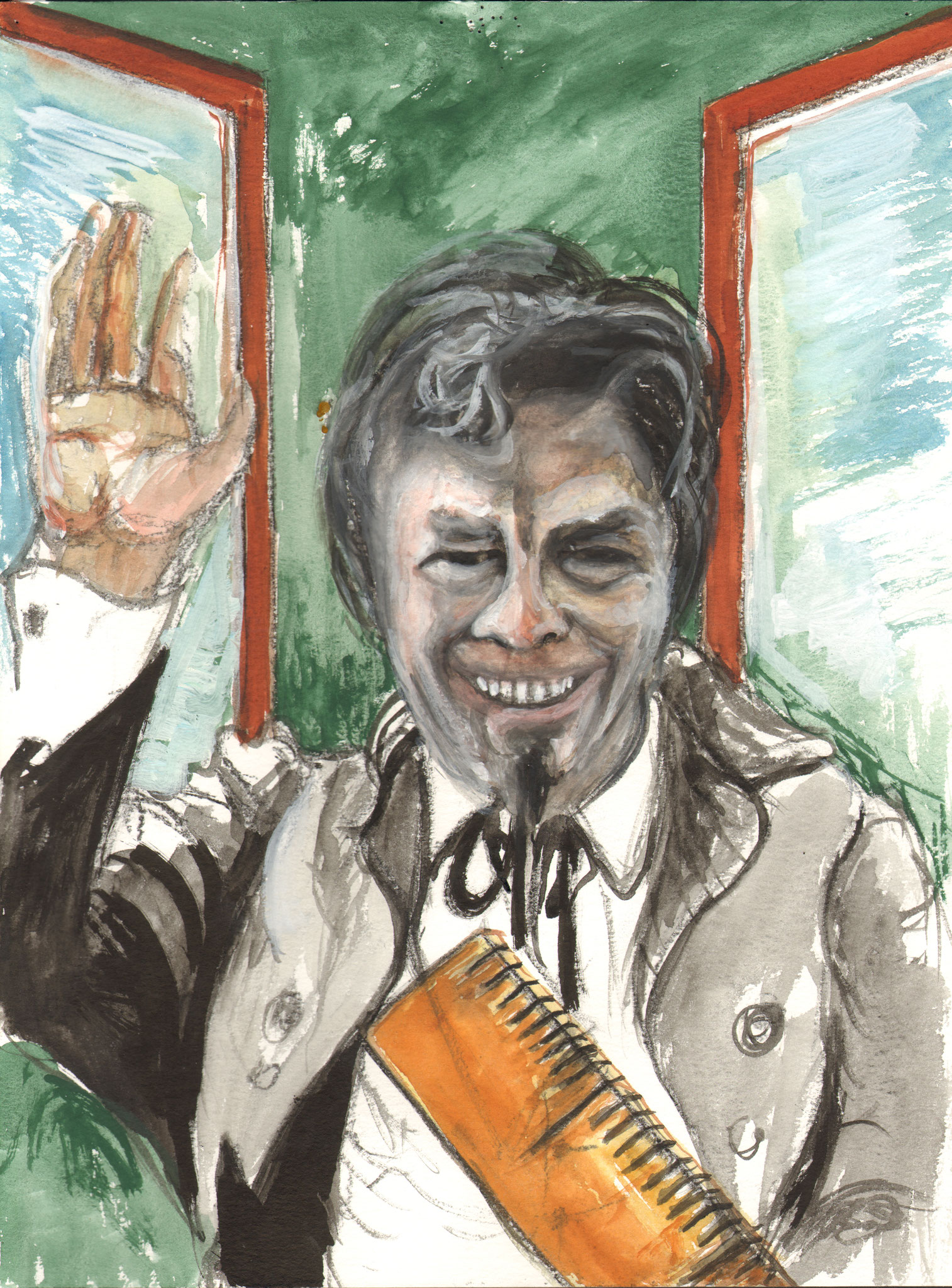 Salvatore Dali und Louis de Funes, Aquarell